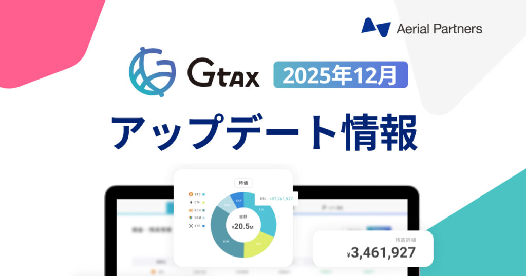 いつも「Gtax」をご利用いただきましてありがとうございます。 今月の「Gtax」アップデート情報をお知らせします。 12月26日更新 取引サービス「Bybit」のAPIについて未対応種別に対応。また、一部取引が反映されない事象を解消。 取引サービス「Bitget」... -