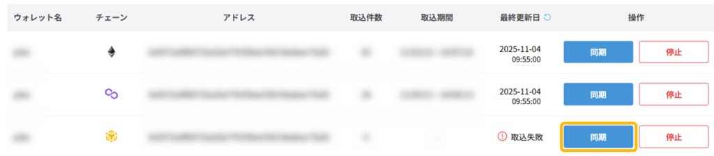 ※現時点では多くのケースで同期が失敗する状況が続いております。