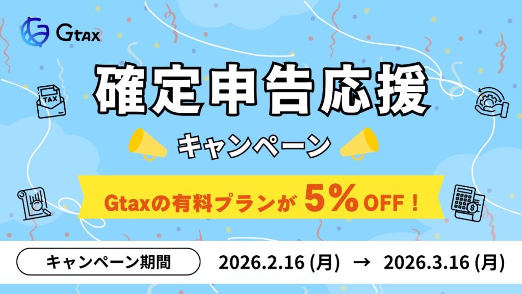 確定申告期間に合わせ、仮想通貨の損益計算を行う方向けに、Gtaxでは期間限定のキャンペーンを実施しております。 本記事では、キャンペーンの概要およびご利用方法についてご案内いたします。 【キャンペーン概要】 期間: 2026年2月16日 〜 2026年3月16... -