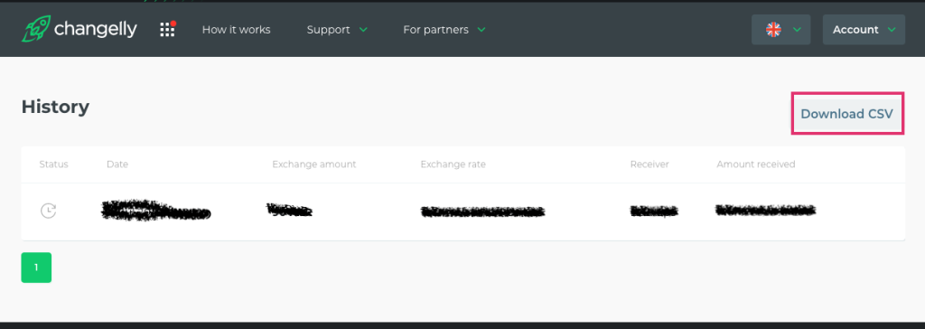 Changellyで取得する必要がある取引履歴は以下の通りです。