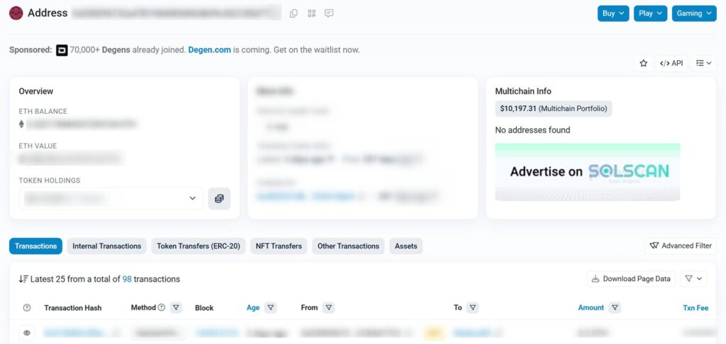 アドレスを入力し検索すると以下のような画面が表示されます。