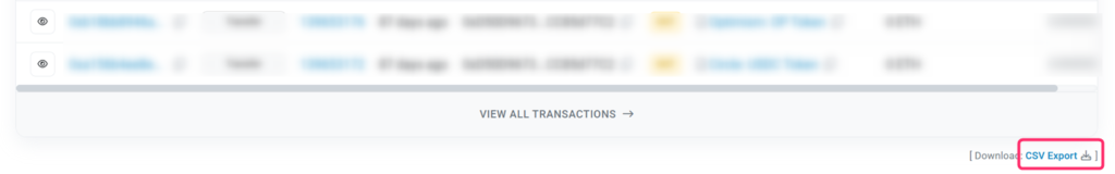 「Transactions」を選択して下部にスクロールして、「CSV Export」をクリックして下さい。