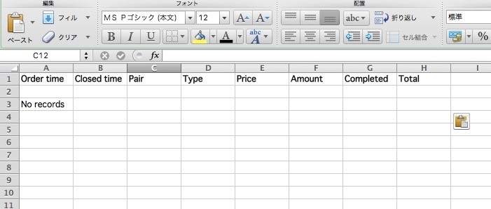 そうすると、「Orders」の取引履歴の画面が表示されるので、「Time」から「Total」までをドラッグ&ドロップしてください。