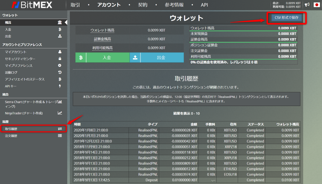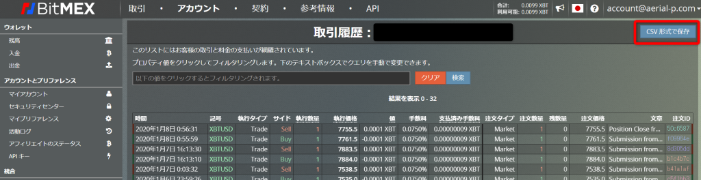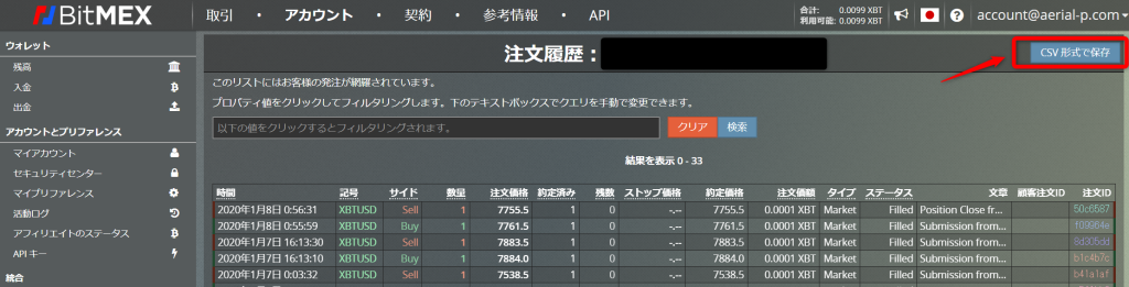 Gtaxを利用する際に、BitMexで取得する必要がある取引履歴は以下の通りです。